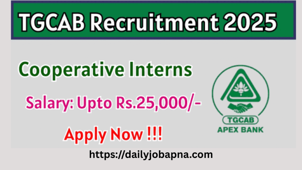 TGCAB Recruitment 2025: तेलंगाना स्टेट कोऑपरेटिव बैंक Interns की भर्ती, ₹25,000 मिलेगी सैलरी! अगर आप बैंकिंग और ग्रामीण विकास (Rural